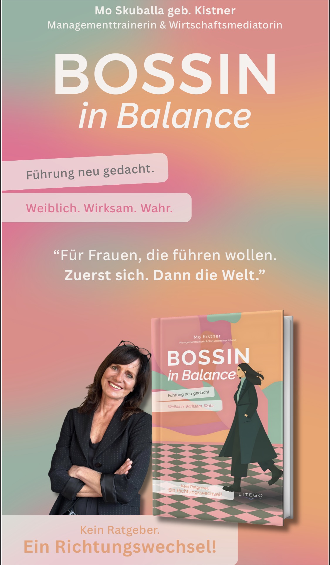 Mo Skuballa, geb. Kistner, erzählt von Erfolgen und Zweifeln, von Bruchlandungen und Neuanfängen aus über zwanzig Jahren Selbstständigkeit und aus der Begleitung von Unternehmerinnen als Trainerin in den vergangenen fünfzehn Jahren.